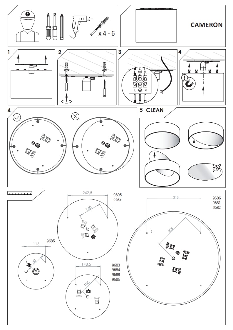 Nowodvorski plafonjera CAMERON GRAY III očarava svojom elegancijom u sivoj boji, idealna za elegantne enterijere. Sa tri E27 izvora svetlosti i maksimalnom snagom od 3x25W, ova svetiljka pruža dovoljno osvetljenja, dok tkanina kao glavni materijal dodaje toplinu prostoru. Njena širina od 44.5 cm i visina od 30 cm čine je pogodnom za prostrane prostorije. Kombinacija tkanine, plastike i čelika osigurava dugotrajnost i kvalitet.