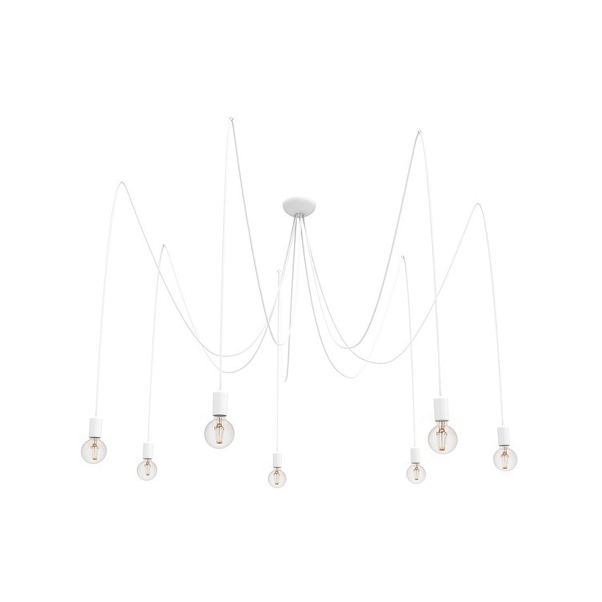 Nowodvorski SPIDER WHITE VII luster nudi unikatni dizajn u beloj boji, sa platnenim kablovima koji mu daju poseban karakter. Sedam zamjenjivih izvora svetlosti omogućavaju prilagođavanje osvetljenja prema vašim potrebama. Visina od 300 cm omogućava mu da se istakne u visokim prostorima, dok čelični dodatci osiguravaju stabilnost.