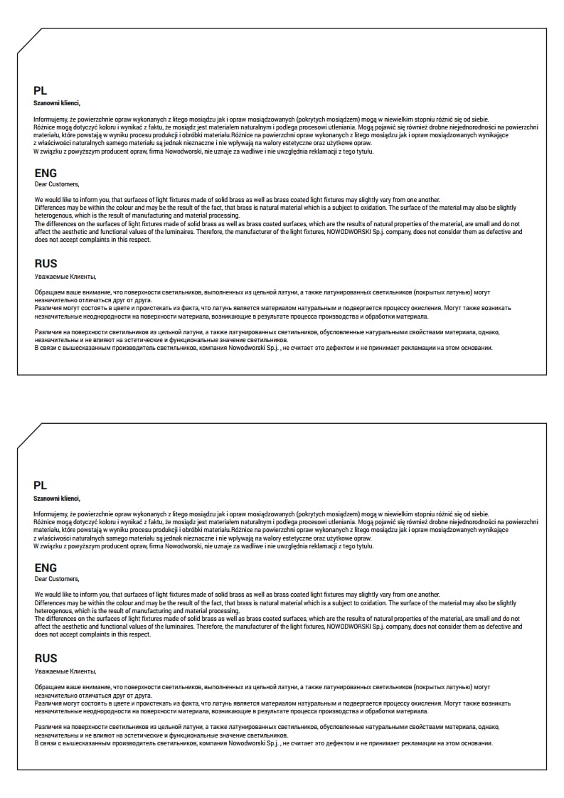 Smešten u srcu Poljske, Nowodvorski Lighting je prepoznatljiv brend koji već više od četvrt veka oblikuje svet rasvete. Osnovan 1994. godine, ovaj porodični brend se izdigao kao jedan od vodećih proizvođača rasvete, pružajući jedinstvenu kombinaciju estetike, funkcionalnosti i kvaliteta. Nowodvorski je posvećen stvaranju rasvete koja ne samo da osvetljava prostor, već ga i transformiše. Njihov asortiman proizvoda obuhvata širok spektar stilova, od modernih i minimalističkih lampi do klasičnih i ekstravagantnih lustera. Jedna od glavnih odlika Nowodvorskog je stalna posvećenost inovacijama. Oni neprestano istražuju nove materijale, tehnologije i dizajne kako bi ostali korak ispred trendova i zadovoljili potrebe svojih kupaca. Fokus na održivosti i energetsku efikasnost se ogleda kroz njihovu široku ponudu LED rasvete. Nowodvorski rasveta je sada dostupna i u Srbiji. Brend koji se ponosi svojim poljskim korenima, teži globalnom prisustvu i nudi kvalitetne proizvode koji su istovremeno moderni i pristupačni. Svojim kontinuiranim trudom da stvori rasvetu koja će biti istinsko umetničko delo u svakom domu, Nowodvorski svetlost ne donosi samo u prostorije, već i u živote ljudi.