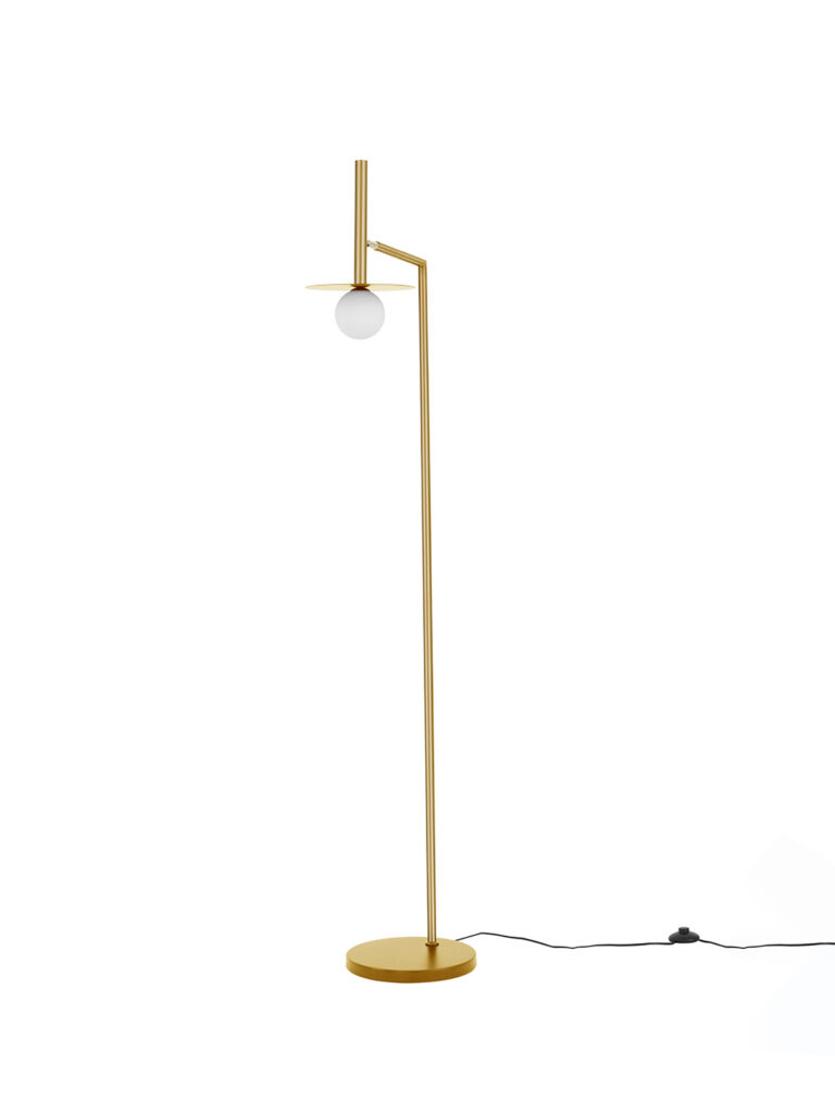 LED podna lampa sa G9 grlom kombinuje metalne i staklene elemente u elegantnoj zlatnoj boji. Idealan je dodatak modernim enterijerima, pružajući sofisticirano i prijatno osvetljenje.