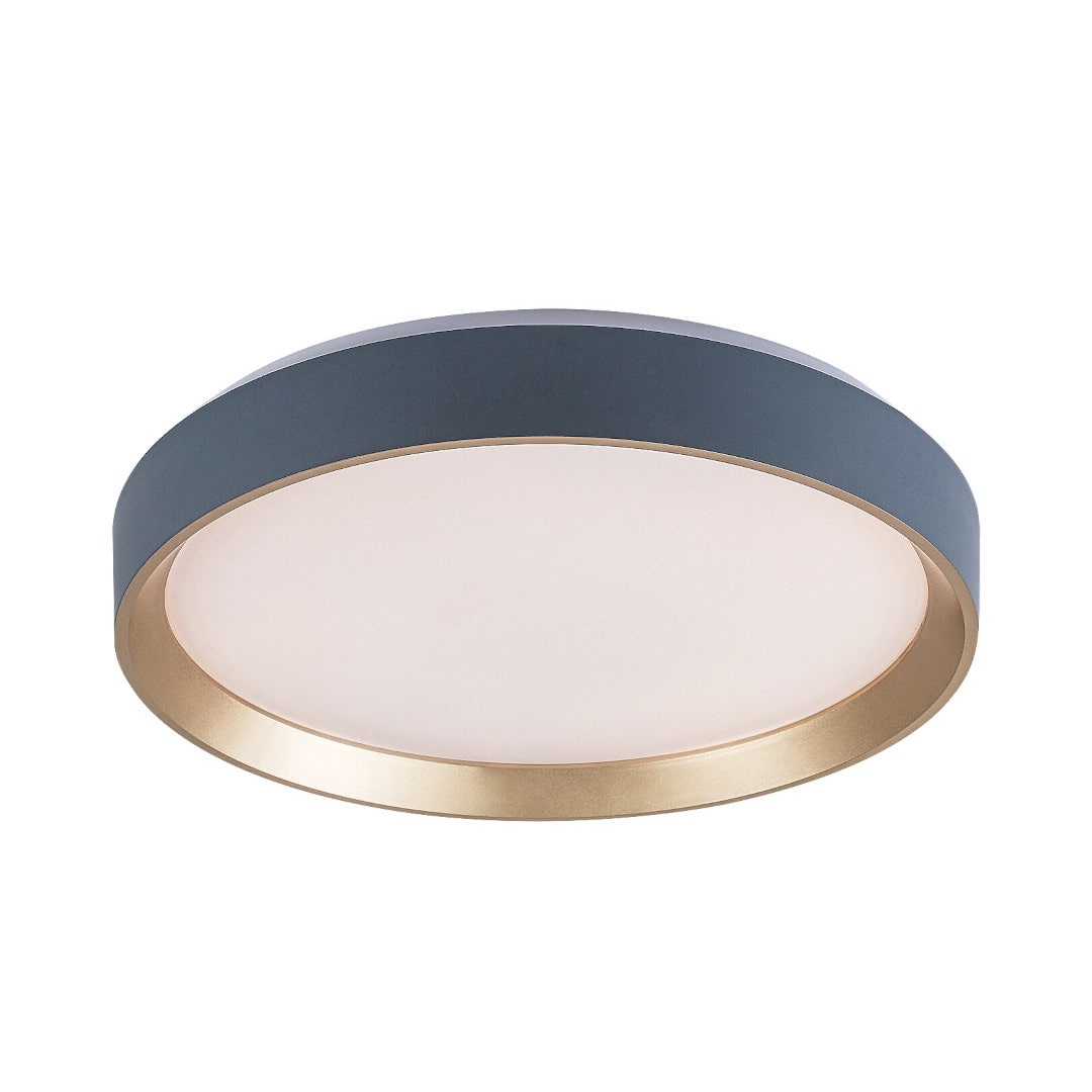 Plafonjera LIATRIS 71185 24W 3000K RABALUX sa integrisanim svetlom tople boje. Spoljašnost plafonjere je sive grafitne boje sa zlatnim prstenom.